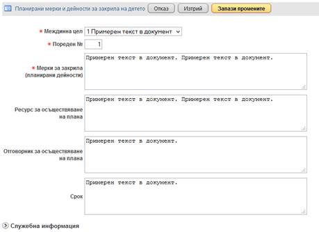 Страницата за въвеждане и редакция на планирана цел към плана за действие изглежда така: