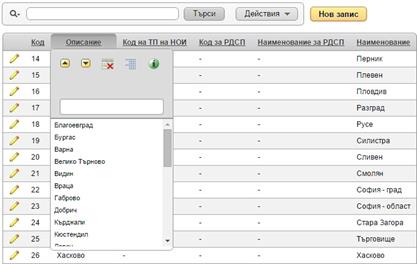 Менюто за работа с интерактивните справки се появява при натискане на бутона „Действия“ и е унифицирано за всички интерактивни справки: